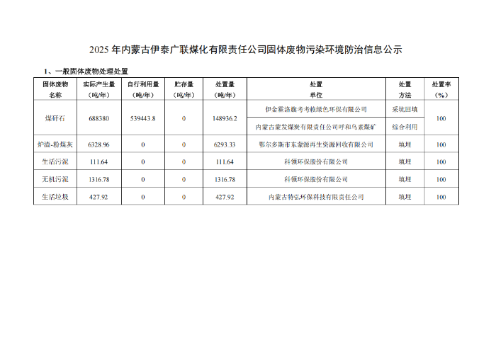 2025年内蒙古伊泰广联煤化有限责任公司固体废物污染环境防治信息公示 <span>发布时间:2026-02-03</span> | <span class="views">关注:<b id="viewCountId">6</b></span> | <a href="javascript:void(0)" class="print"><i class="ion"></i></a> 2025年内蒙古伊泰广联煤化有限责任公司固体废物污染环境防治信息公示——2026.02.03.pdf2025年内蒙古伊泰广联煤化有限责任公司固体废物污染环境防治信息公示——2026.02.03(1).pdf 返回列表 上一条 下一条
